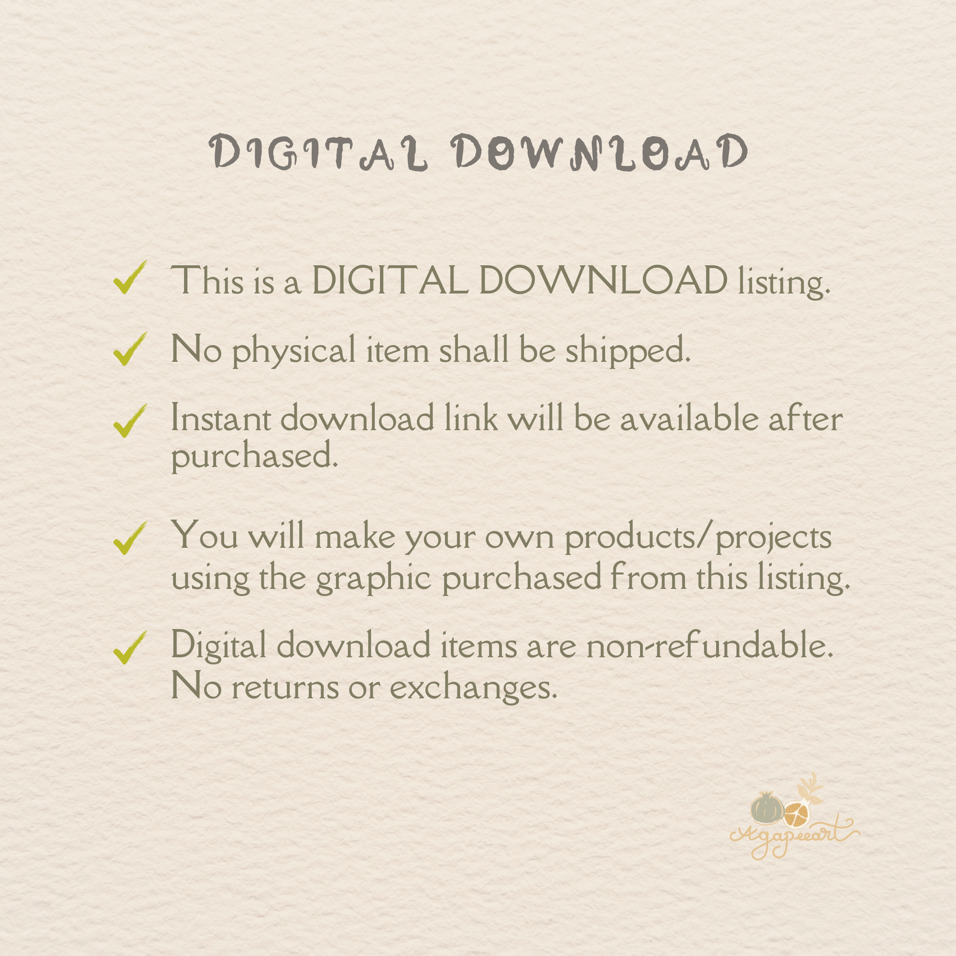 If you have any questions or concerns, feel free to reach out before purchasing. Due to the nature of digital downloads, no refunds will be provided.