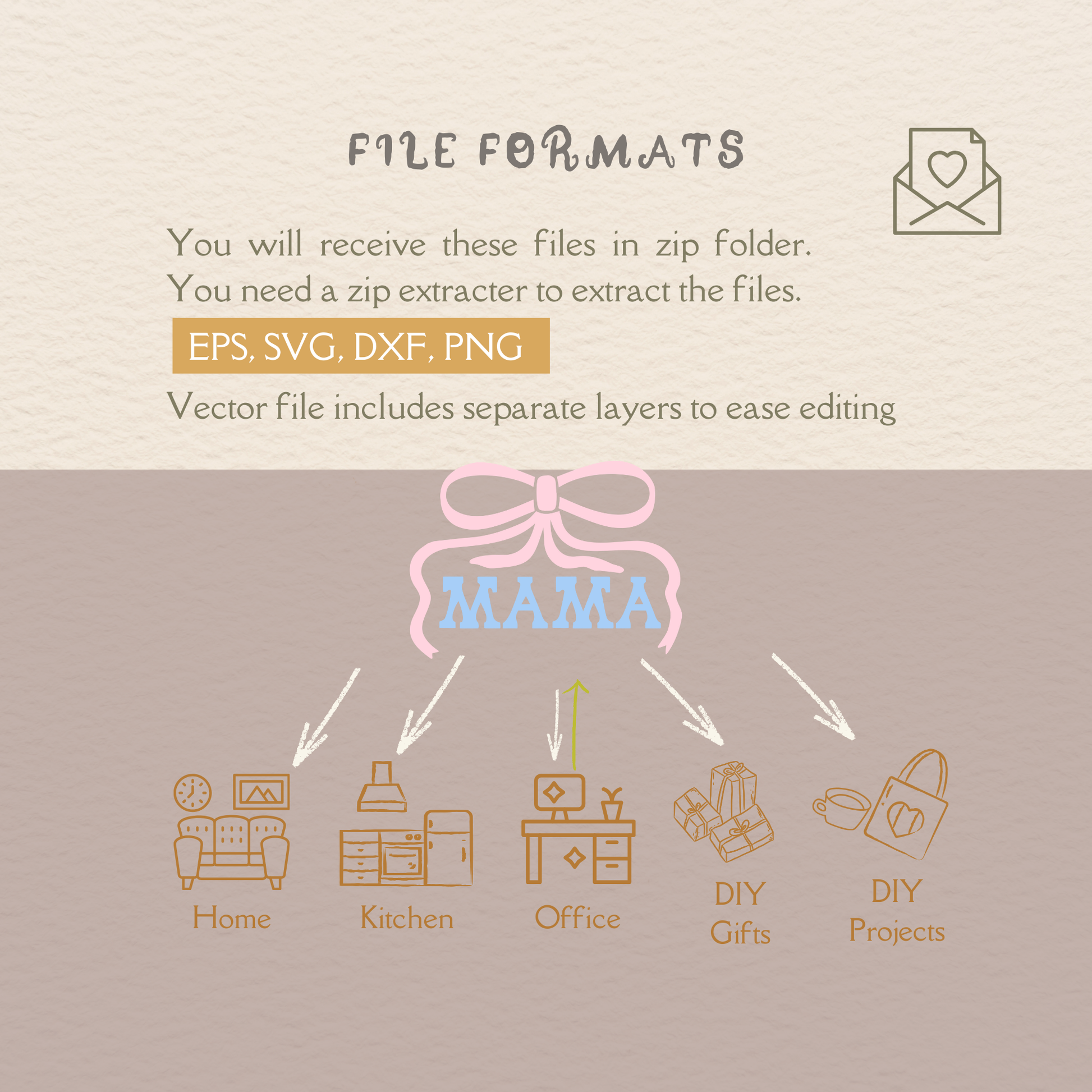 A ribbon bow with the hand-lettered word “MAMA”, created for clean cuts and smooth scaling. It’s perfect for moms, makers, card designers, and small shops creating meaningful mom-themed projects. Use it for Mother’s Day gifts, baby showers, maternity announcements, family keepsakes, or everyday mom appreciation. Add it to cards, stickers, shirts, mugs, tote bags, gift tags, packaging inserts, nursery prints, and more.