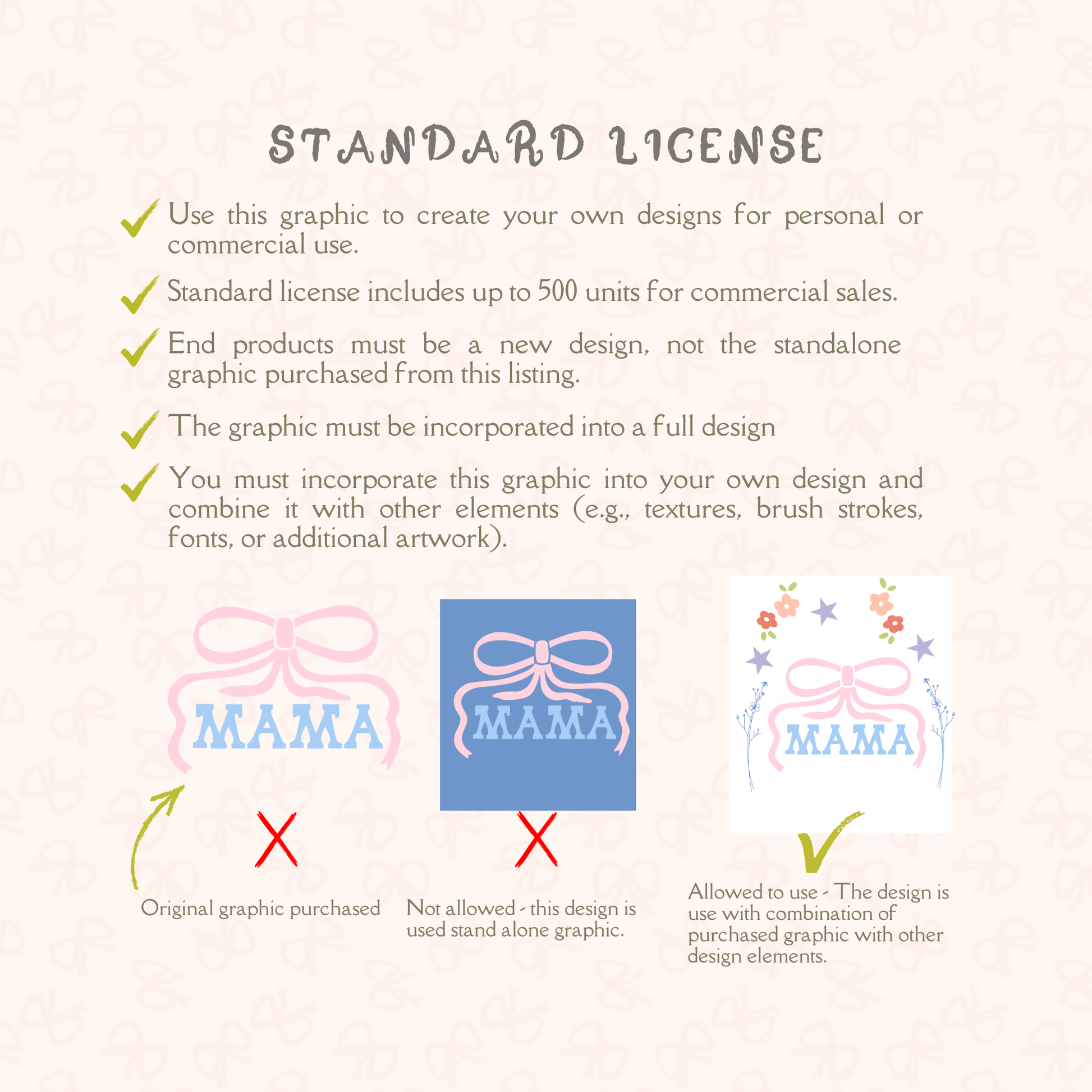 ✘ Final design must not be the stand alone graphic you purchased from this listing.
